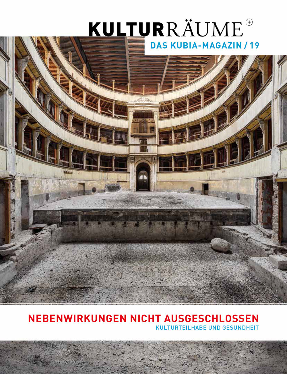 Das kubia-Magazin Kulturräume+ wird zweimal im Jahr mit wechselnden Themenschwerpunkten von kubia herausgegeben. Das Magazin bietet aktuelle Berichte aus der Arbeit des Kompetenzzentrums, vertiefende Beiträge aus Wissenschaft und Praxis zu Kultureller Bildung im Alter und inklusiver Kulturarbeit sowie eine Vielzahl von weiterführenden Informationen und Tipps. Die Kulturräume+ richten sich an interessierte Kulturschaffende sowie Tätige in Kultur-, Sozial- und Bildungseinrichtungen.